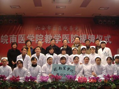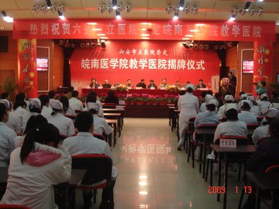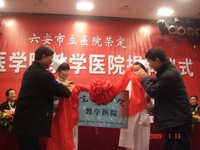 六安市人民政府副市长曹国强在揭牌仪式上说,六安市立医院能成为我校教学医院,是六安市立医院的一件大喜事,也是支持革命老区建设的一件大事。希望六安市立医院抓住这一大好契机,借助我校雄厚的师资力量,引进先进的教学理念,力争医疗、教学、科研工作再上新台阶,把医院的各项事业做得更好。