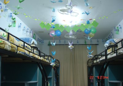 本次活动取得了极大的成功主要是因为其得到校领导、各系领导的高度重视,各系辅导员深入学生宿舍与学生一起探讨宿舍布置,极大的提高了同学们的积极性。另一方面与全校学生的积极支持是分不开的,他们积极响应,认真布置自己的宿舍,尤其是08新生,有很多人用废弃矿泉水瓶等其它一些东西作出很多小饰品装饰宿舍,甚至有同学用矿泉水瓶作出鞋架,他们的心灵手巧,他们的创造性令人惊叹!