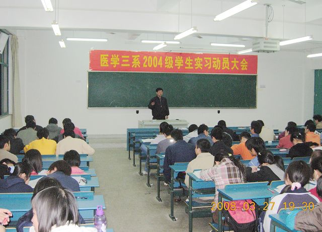 3月27日晚,医学三系毕业实习动员大会在东403教室召开.会议由王娓老师主持,法医专业和口腔专业2004级全体学生参加了大会。医学三系余海燕主任、陈阳副主任、唐传莉副主任出席会议并作了重要的实习动员讲话,参加会议的还有医学三系张越老师、法医专业2004级辅导员林旭东老师、口腔专业2004级辅导员许从平老师。 动员大会上,首先由唐传莉副主任宣读了医学三系有关实习规定文件。余海燕主任接着介绍了医学三系各实习点医院的基本情况,回顾了医学三系学生毕业实习的好传统和取得的好成绩,并对同学们的实习阶段的学习生活提出三点要求:1、做到三个“遵守”,即:严格遵守国家法律法规,遵守学校与医学三系有关实习规定,遵守实习医院规章制度;2、尊敬实习医院的带教老师,同兄弟医学院校实习队互助友好;3、实习队同学之间团结协作,勤奋刻苦学习,努力提高医学实践水平,达到毕业实习目的。余主任勉励同学们要继承三系学生的实习好传统,以良好的实习表现与出色的实习成绩,为医学三系争光,为学校的“迎评促建”添彩。陈阳副主任在动员会上指出,毕业实习阶段是大学学习生活的重要阶段,是临床实践的起步阶段,同学们必须严格按照有关规定搞好毕业实习的学习与生活。陈副主任希望同学们珍惜大学毕业实习阶段,珍爱大学最后一年的同学相处时光,珍视大学老师们对大家的殷切教诲,适应新时代对同学们的要求,发奋学习、励志成才,为三系的建设与发展做出应有的贡献。动员大会期间,张越老师宣布2004级法医专业和口腔专业实习队名单,同时宣布了各实习队干部和学生组成。唐副主任对实习队学生干部提出了“三个模范带头作用与十项任务”的具体要求。在谈到发挥学生干部的模范带头作用时,唐副主任强调三系毕业实习队的学生干部必须做到“学习的模范、遵纪的模范、团结协作的模范”,希望学生干部带领实习队同学们充分展示三系大学生良好风貌,并期望大家在学习中健康成长、在锻炼中尽快成才。 医学三系非常重视本科大学生的毕业实习工作。新学期开学伊始,医学三系领导与老师们就展开联系调整实习单位、研究制定新的实习管理办法、分配学生实习分组等2004级的毕业实习工作。此次实习动员大会的召开,标志着医学三系2004级大学生正式开启他们的毕业实习生活。在三系与学校相关部门的科学管理下,该届毕业实习的同学们将会取得出色的实习成绩。