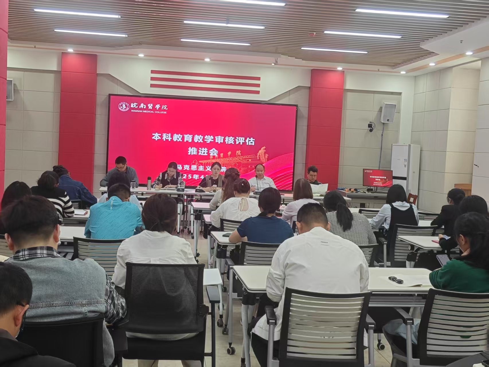 4月23日下午,马克思主义学院在虚拟仿真中心召开新一轮教育教学审核评估工作推进会。学院党总支书记邹莹,党总支副书记、院长陶庭马,副院长张婧及全体教师参加会议,会议由邹莹主持。