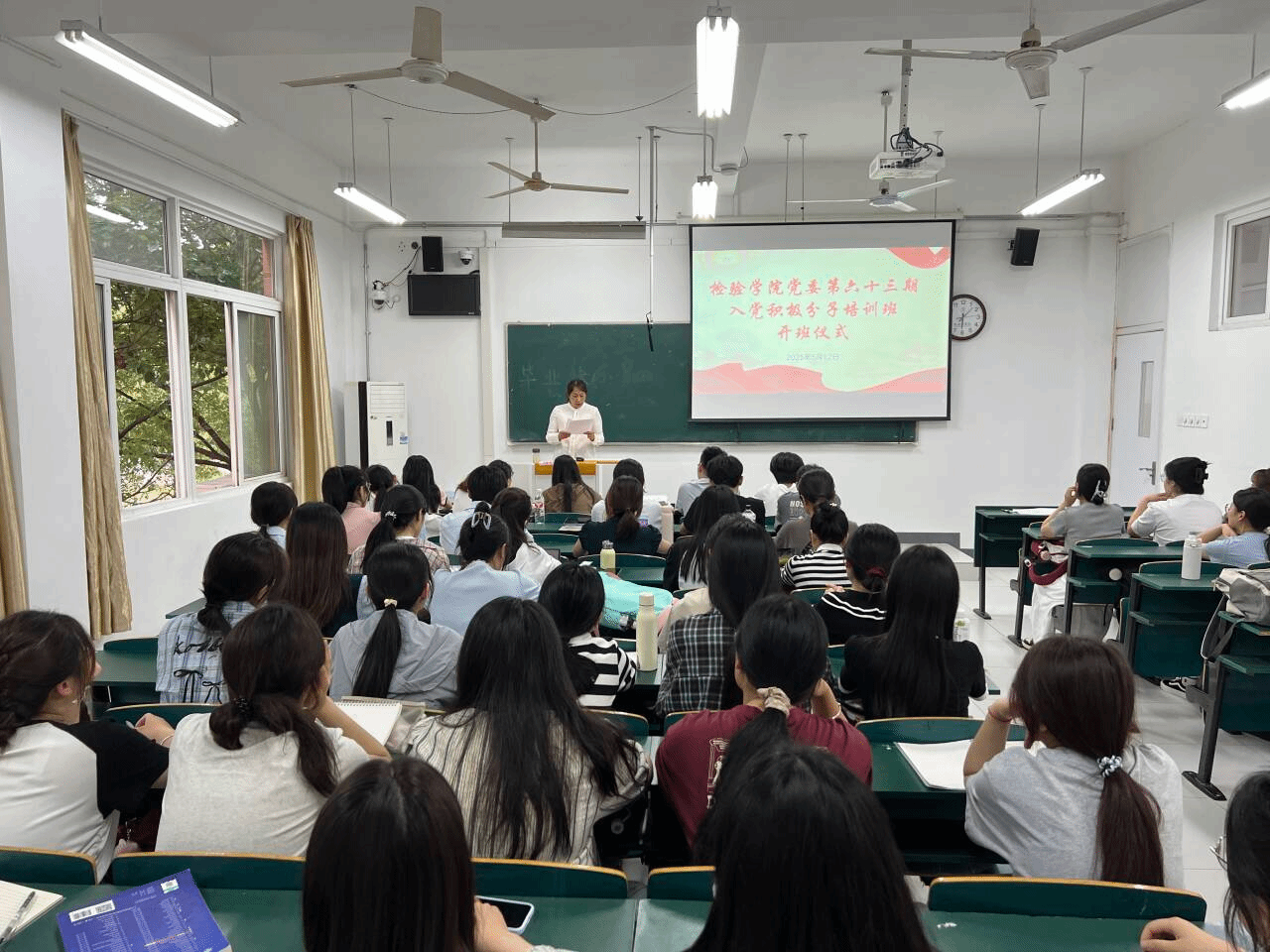 为深入学习贯彻习近平新时代中国特色社会主义思想,切实加强入党积极分子、青马学员培养教育,5月中下旬,检验学院党委在滨江校区(南区)组织开展了第六十三期入党积极分子培训暨院第十七期青年马克思主义者培养工程大学生骨干培训班专题培训。学院党委书记、副院长刘影,党委副书记、院长洪亮,党委委员孙恩涛,培训班班主任王文杰和45名入党积极分子及青马班学员参加。
