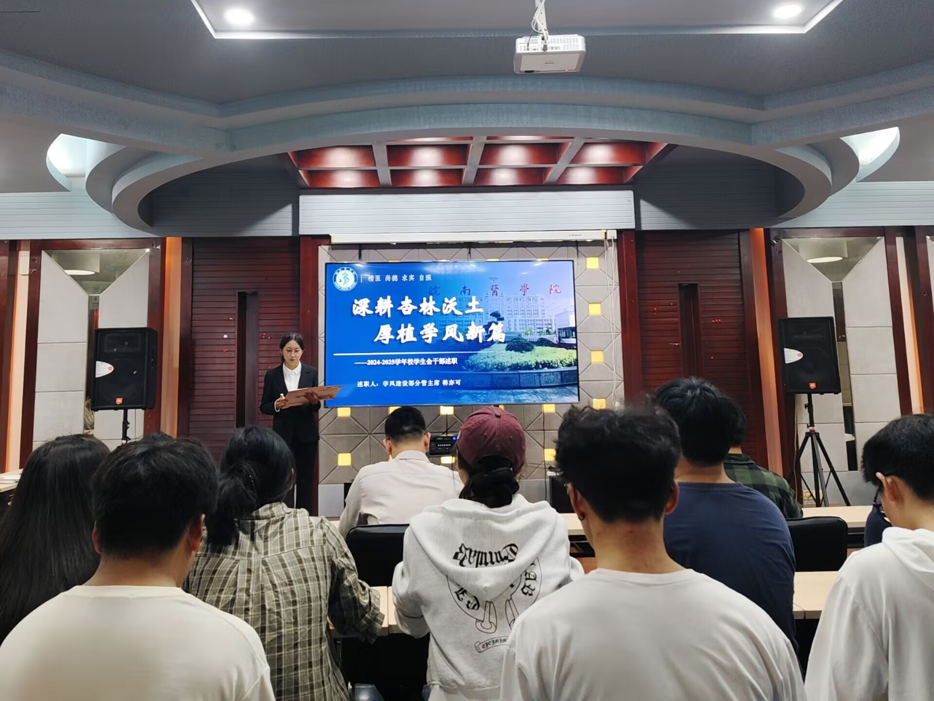 为持续深化学生会组织建设,全面总结阶段性工作成效,推动学生会工作更加规范、高效开展,10月17日下午,校团委在大学生活动中心3010多功能厅召开2024-2025学年第二学期校学生会骨干述职评议会。校团委书记饶婷婷、副书记黄龙,学生工作部骆成老师,学生兼职副书记邱浩楠及第十七届学生会委员会委员代表参加会议。
