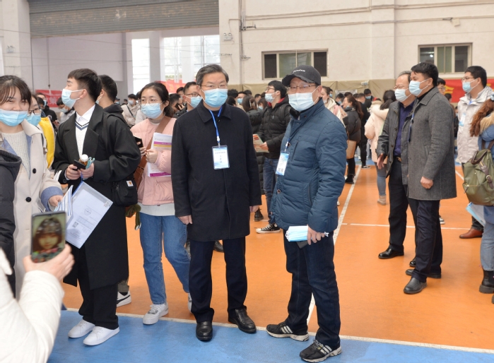 2020年12月28日,我校2021届毕业生供需洽谈会在滨江校区风雨操场举行,本次招聘会吸引了来自全国各地的286家用人单位参加,现场提供本专科就业岗位12360个,供需比达1:3.25。此次洽谈会受到了广泛关注,2500余名应届毕业生前来应聘洽谈。校领导高度重视就业工作,党委书记章尧,副院长吴金月,纪委书记贾贤燕,副院长徐朝阳来到招聘会现场指导,了解毕业生就业情况和用人单位对我校毕业生综合素质的评价。