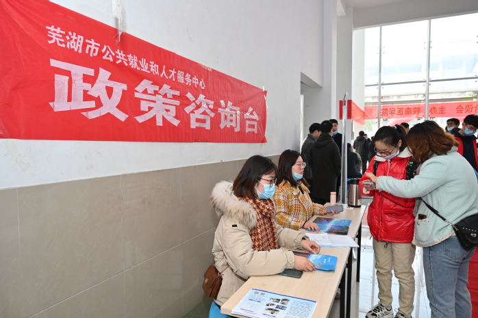 安徽省大中专毕业生就业指导中心吴命文到现场考察学校就业市场建设情况。芜湖市公共就业和人才中心在洽谈会现场设立政策咨询台,中心副主任滕静芳到现场宣传就业创业政策,零距离服务广大毕业生。